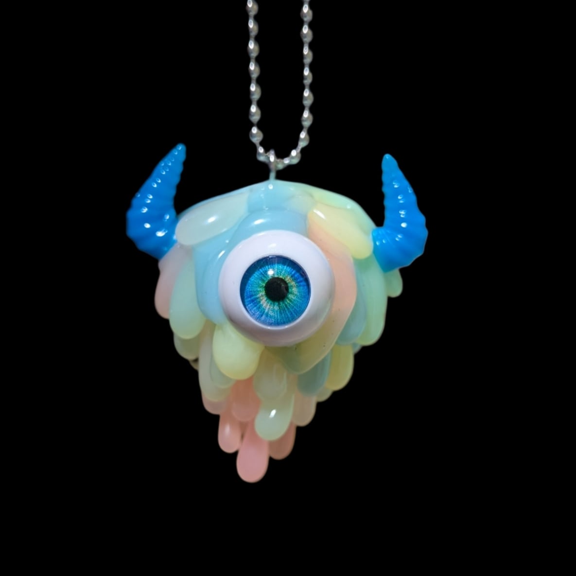 どろりんキーホルダーです。蓄光です。光を溜めてあげると暗闇でぽわっと光ります。